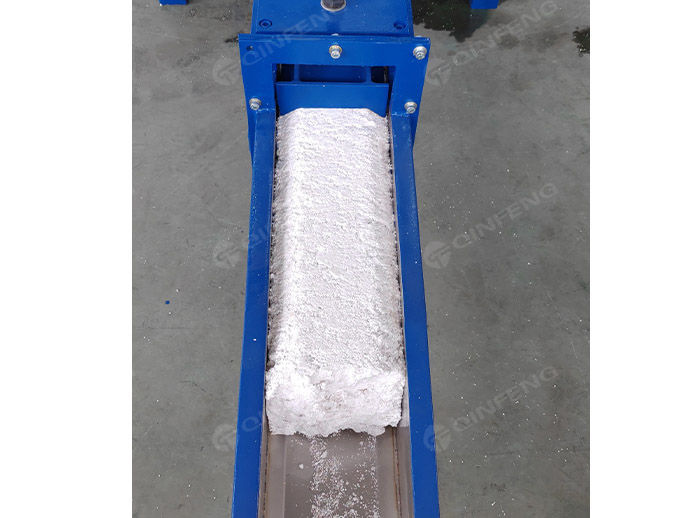 傾斜投料斗一便于投 EPS 物料,二物料不會在破碎過程中將物料推出料斗。發泡聚苯乙烯的熱熔回收 機用破碎刀,平行放置的刀軸,刀軸上對稱地固定有刀片,刀軸上的刀片相互錯位排列,并且每根 刀軸上的相鄰刀片以相同方向錯開一定角度排列于刀軸上。物料破碎后用電機帶螺桿壓出成塊。